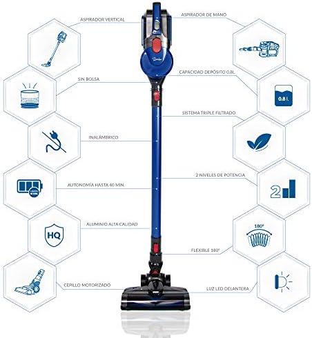 Funciona con filtro HEPA lavable, lo que permite limpiarlos con agua sin tener que cambiar los filtros con frecuencia. Algo que llama la atención, es su autonomía de entre 2o y 30 minutos como mínimo, lo que ofrece un buen rendimiento sin tener que depender de enchufes.