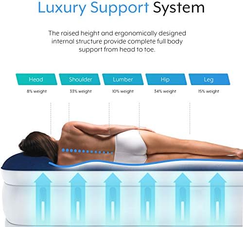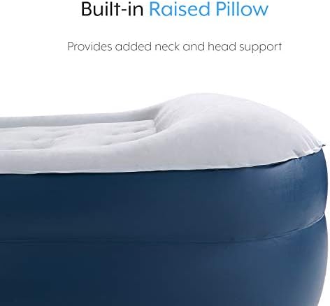 Como uno de nuestros productos estrella de la lista de mejores colchones hinchables individuales, este producto se encuentra equipado con 21 resortes de aire estructural lo que le asegurará un máximo soporte y durabilidad del mismo. Su capa superior es extra gruesa, además de ser impermeable y duradero, y cuenta con un cojín integrado para proporcionar soporte para la cabeza el cual generará una comodidad similar a la de una cama.
