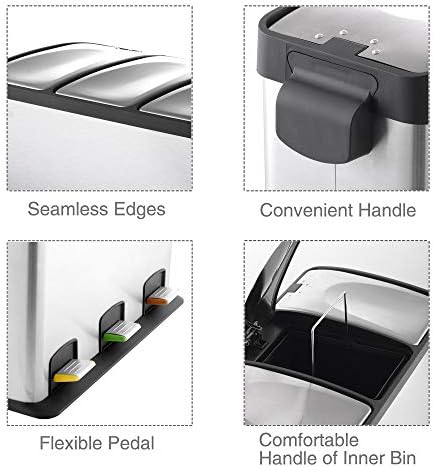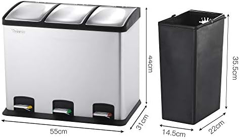 Hay que decir que cuando se compra un contenedor de basura con más compartimentos, la basura se divide en varios contenedores y por lo tanto será más grande que un recolector de residuos con un solo cubo.