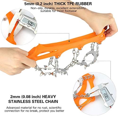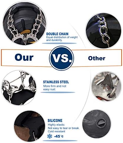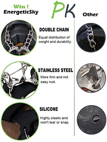 Songwin ha querido mejorar su última versión de crampones, incluyendo en este modelo unas espigas de acero inoxidable de alta calidad, resistente a la abrasión y a cualquier tipo de corrosión. Se habla de estos comos unos crampones ideales gracias a las 19 espigas multidireccionales que los componen. Su cadena de soldadura tiene una resistencia óptima y sus puntas antidesgarro son mucho más resistentes.