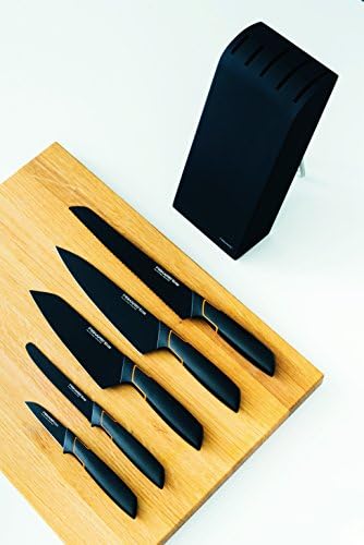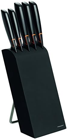 Pero si lo que quieres es un bloque de cuchillos fabricado con los materiales más exclusivos y resistentes, que combine funcionalidad con estética, este Fiskars es una alternativa a valorar. A un precio asequible por la calidad que ofrece, este bloque de cuchillos de cinco piezas está hecho de acero inoxidable japonés, y destacan por no perder su corte y por ser muy resistente a arañazos o rayaduras.