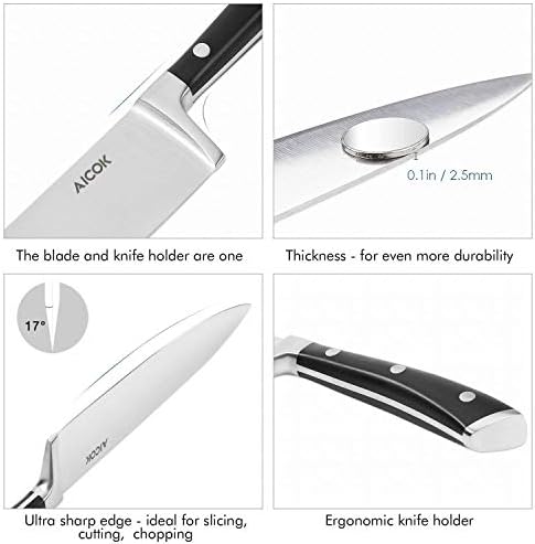 Se trata de un pack de seis cuchillos que resalta por tener hojas de gran calidad y muy resistentes. AICOCK ha diseñado cuchillos que destaquen por una duración y resistencia impecables. Al venir en un bloque de madera, su almacenaje es sencillo, e incluso aportará un toque diferente a la decoración de la cocina.Â