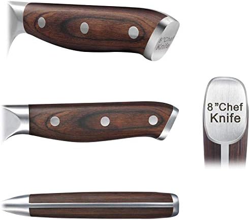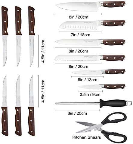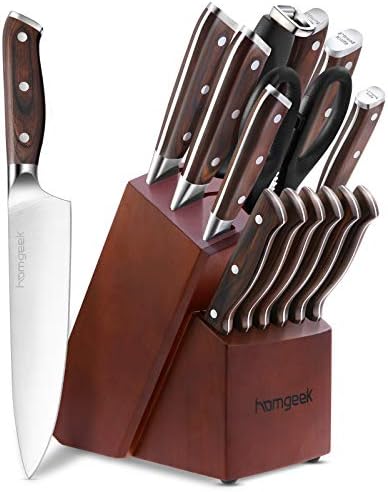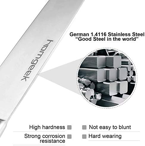 Este modelo es muy popular entre los consumidores amantes de la cocina, ya que es un bloque de cuchillos bastante asequible y proporciona resultados fantásticos que no se corresponden con su bajo precio. Fabricado con acero inoxidable 420 de gran calidad, tiene alto contenido de carbono.