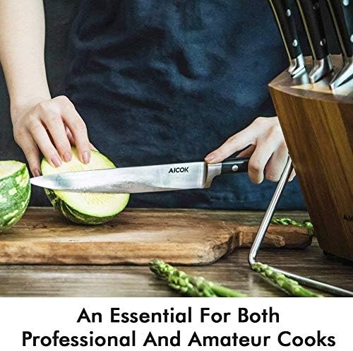 Como uno de los bloques de cuchillos más económicos de toda la lista, esta kit de ocho cuchillos ofrece un rendimiento excelente, tanto a corto como a largo plazo. Sus hojas están fabricadas con acero inoxidable, y se han afilado minuciosamente para que sea lo más preciso posible.