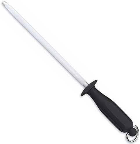 Con este producto no solo tendremos una chaira duradera, sino que también dejará las hojas de tus cuchillos perfectamentes afiladas durante mucho tiempo. Según el cuchillo que quiera trabajar, deberás usar un tipo de afilado u otro, siempre de manera frecuente para no perder la suavidad. El mango negro de esta chaira destaca por ser muy cómodo y de buen agarre, por lo que te sentirás seguro de utilizarlo.