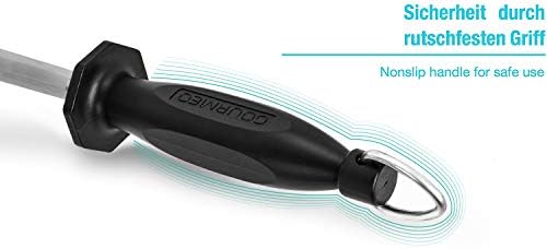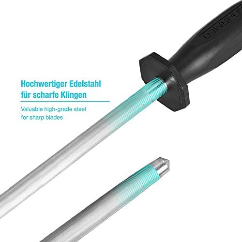 Si estás cansado de ver como tus viejos afiladores no dan la talla con tus cuchillos favoritos, hoy tenemos una solución rápida y económica que cambiará la manera en la que cocinabas. Con esta chaira de gran calidad hecha de acero inoxidable tendrás un producto que estará en casa contigo durante muchos años. Proporciona afilados muy precisos, y cuenta con cualidades y un diseño que nos permite manejarlo con confort y seguros.