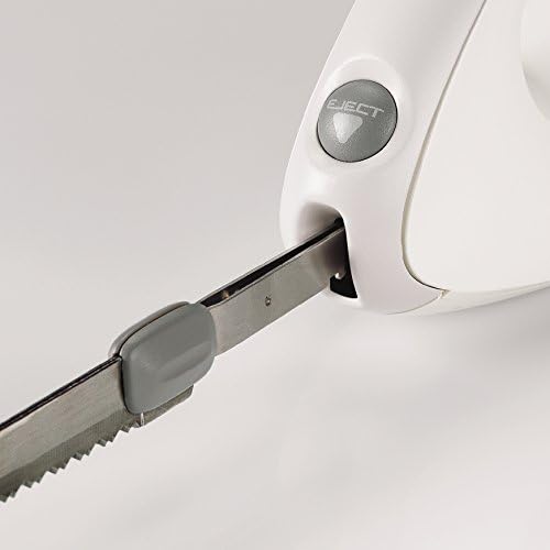 Su carcasa incorpora un botón para la extracción de sus cuchillas, tanto para realizar el cambio de las mismas, como para que su limpieza te resulte mucho más sencilla y segura. La gran calidad de las cuchillas de este cuchillo eléctrico permite que puedan lavarse en el lavavajillas sin ningún tipo de desgaste ni deterioro. Este cuchillo incluye una bolsa de almacenaje, para conservar tu cuchillo en mejor estado por mucho más tiempo.