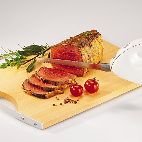 Hay varios alimentos que se pueden cortar con un cuchillo eléctrico; es excelente para cortar el asado, incluso si hay que dejarlo enfriar para que la carne no se deshilache demasiado, y para la carne hervida. ¿Quieres cortar algunas verduras? No hay problema, de hecho es un gran ahorro de tiempo. Un cuchillo eléctrico también es muy útil cuando necesitas cortar el bizcocho antes de rellenarlo. Y, por supuesto, es genial para cortar el pan.