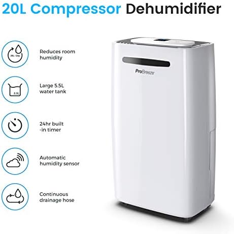 Otro deshumidificador de Pro Breeze, es este modelo con una capacidad de 20 litros por día, por lo que está indicado para estancias de mediana amplitud. Permite ajustar el nivel de humedad deseado entre el 30 y 80%. Cuando alcance el porcentaje preestablecido, el dispositivo se apagará para ahorrar energía.
