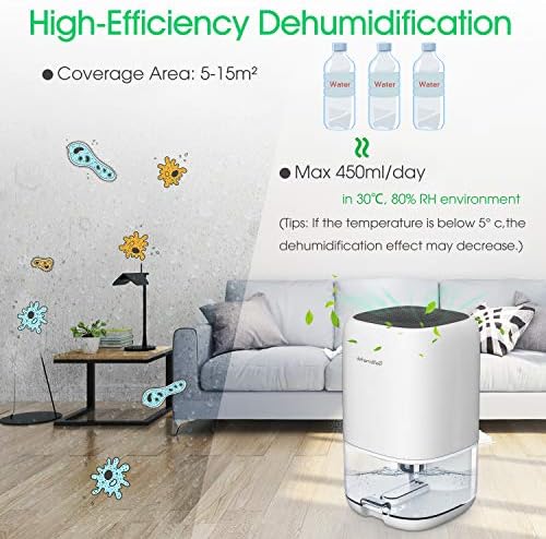 Este deshumidificador UGHEY incopora un tanque de agua de 1000 ml y tiene una capacidad de absorción de 400/450 ml por día. Además, durante su funcionamiento trabaja de forma silenciosa y respetuosa con el medio ambiente.