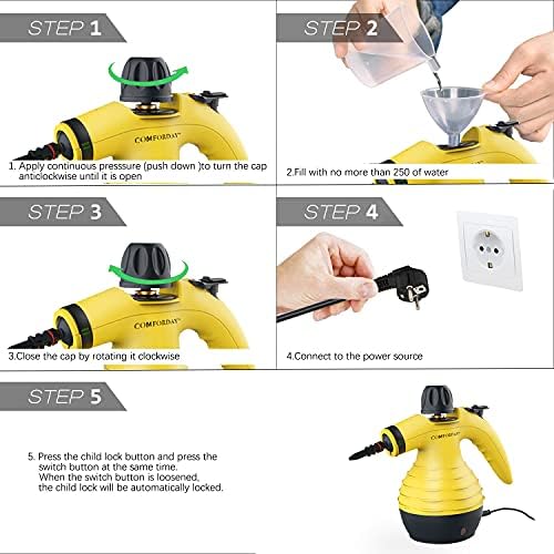 Si estás buscando la escoba de vapor más completa, este Comforday es tu mejor opción. Con este modelo toda la suciedad desaparecerá rápidamente gracias a su potencia. Este producto cuenta con accesorios y funciones que limpiarán profundamente hasta eliminar todas las grasas del suelo. Gracias a su presión de vapor potente podrás acabar con las bacterias y virus. Esta escoba de vapor aguanta un uso de hasta 15 minutos gracias a su capacidad de depósito para 250 mililitros de agua.