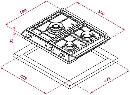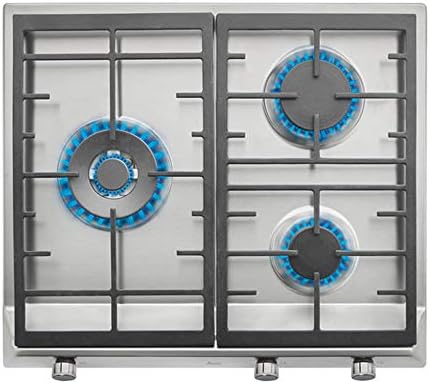">Como uno de los fogones de gas más prácticos de esta lista ya que sus quemadores son de alta potencia. Este modelo es ideal para una casa de tamaño medio gracias a sus medidas 3 x 58 x 50 cm. Esta encimera de gas viene equipada con 3 fuegos (semi-rápido 1,75 kW + rápido 2,80 kW + doble anillo 4,00 kW). Hecho de acero inoxidable, dispone de autoencendido integrado en cada fuego y accionado por cada mando.