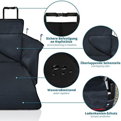 La característica principal de las fundas de maletero para perros es que están equipadas con cordones que pueden fijarse a los asientos para adaptarse mejor a las características de su automóvil. Son bastante grandes, así que son perfectos para perros de todos los tamaños, desde los más pequeños a los más grandes. Una vez posicionado, este producto cubre todo el asiento trasero incluyendo el respaldo y el compartimento para las piernas.