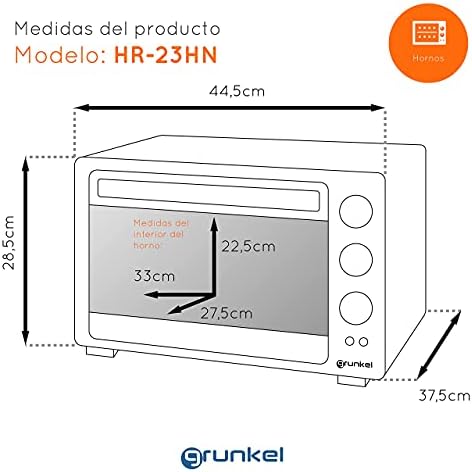 Este elegante horno de sobremesa con capacidad de 23 litros es una opción fabulosa para aquellas familias medianas que quieren tener un dispositivo más eficiente de cocinado. Viene con temporizador de una hora y cuenta con dos zonas de cocción para cocinar. Con una potencia de 1600W ajustable mediante su regulador de temperatura, este horno de sobremesa dispone de tres funciones de calor.