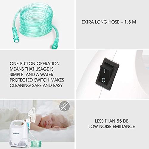 Un inhalador eléctrico eficaz y sencillo que no te va a defraudar porque el Hangsun está recomendado especialmente para enfermedades respiratorias como el asma o algunos resfriados que hacen que te cueste respirar. Olvídate ya de pasarlo mal con tus vías respiratorias y actúa desde el primer momento para sentirte con fuerza a lo largo del día con este inhalador eléctrico con certificado médico. Podrás utilizarlo en cualquier parte gracias a su manguera extra larga de 2 metros y recibirás diferentes accesorios para hacer tu experiencia más efectiva. Haz un pequeño esfuerzo e invierte en salud. ¡No te arrepentirás!.