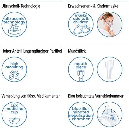 Si andabas detrás de un inhalador eléctrico moderno y de calidad estás en el lugar adecuado porque gracias a su tecnología de ultrasonido de última generación vas a poder inhalar medicamentos de la manera más eficaz. Este inhalador eléctrico está lleno de detalles y su cámara nebulizadora está iluminada en un color azul que te divertirá para poder ver el lado más positivo de las cosas. Nadie se enterará de lo que estás haciendo porque este inhalador eléctrico es tan silencioso que podrás usarlo en cualquier lugar y en cualquier momento. Despreocúpate cuando tengas mil cosas en la cabeza porque este inhalador eléctrico es tan inteligente que se desconecta automáticamente cuando no está en uso. ¡Atrévete a probarlo!.