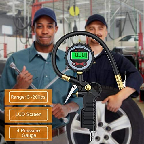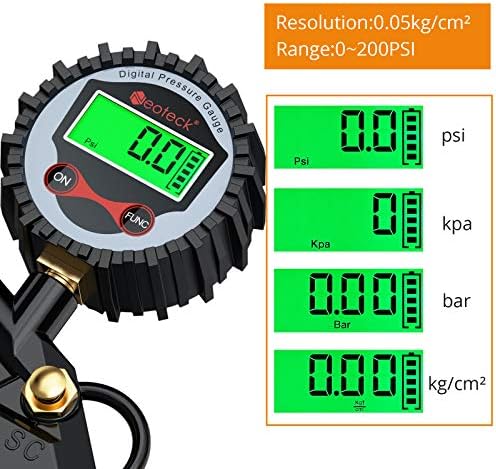 Como el manómetro más económico de toda la comparativa, este modelo es ideal para vehículos o bicicletas que necesiten tener una precisión exacta del aire. Se trata de un modelo potente, que cuenta con una estructura sólida y funcional que ofrece información en una pantalla LCD que te permite ver los datos hasta en la oscuridad. Tiene 4 medidas de unidades diferentes, y su sistema de ahorro de batería, que dura alrededor de medio minuto, hace que se apague para no desperdiciar batería. La boquilla iluminada de este manómetro cuenta con un sello que se adapta para ofrecer resultados claros y concisos.