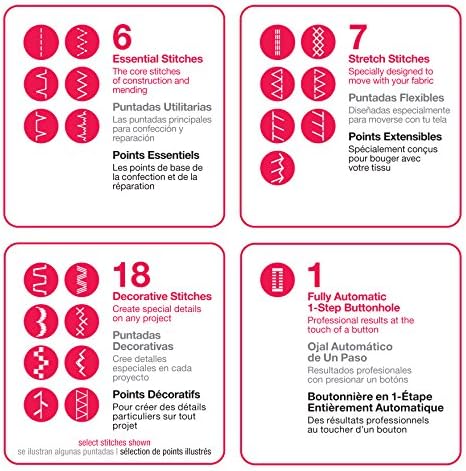 Esta máquina de coser es lo más deseado entre los amantes de la costura porque con un devanador automático y selector de largo de puntada te vas a quedar sin habla cuando empieces a usarla. Ya no tendrás que preocuparte por gastar mucho dinero y tener que llevar a un modista tu prenda favorita para arreglarla porque esta ideal máquina de coser ha llegado para facilitar tu vida. Disfruta ya de su sistema de bobina vertical y ajuste de presión de prensatelas automático. Sacarás tu lado más creativo con esta moderna máquina de coser hecha de los mejores materiales del mercado