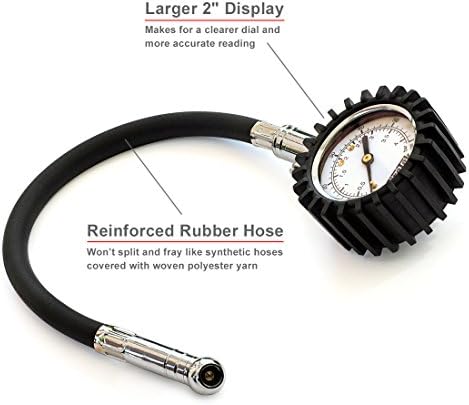 Este medidor de presión para neumáticos de precisión destaca por su estructura de acero resistente y su tubo flexible de goma. Además, garantiza un resultado fiable gracias a los empalmes internos que hacen que no haya fugas de aire. Tan durable como práctico, su manómetro mecánico para neumáticos es de calidad, da igual si llueve o hace viento. Lo mejor, con la compra de este medidor de presión para neumáticos de precisión ahorrarás en combustible.