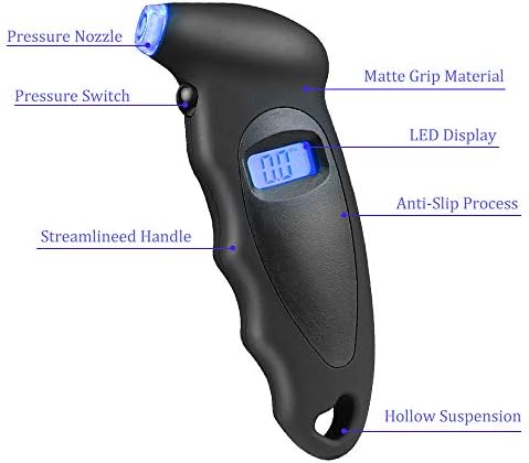 Este medidor de presión para neumáticos de precisión viene con boquilla de luz y led de iluminación de fondo para que puedas ver todo de manera clara, da igual si es de noche. Es muy sencillo de usar, basta con apretar el botón para encender el medidor. Solo tendrás que unirlo a la válvula del neumático para conseguir la presión ideal. Con este medidor de presión para neumáticos de precisión barato tendrás un buen producto a un precio único.