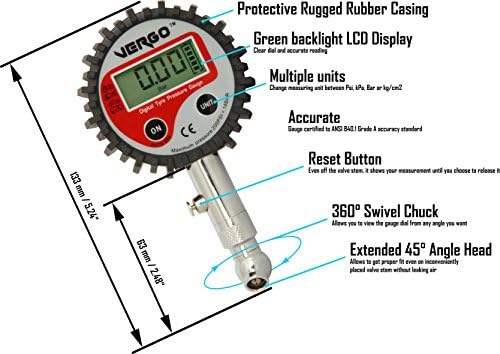 Siguiendo la norma internacional de precisión, este medidor de presión para neumáticos cuenta con cuatro escalas. Hecho con materailes de gran calidad, su estructura es sólida de acero con una carcasa que lo protege y una pantalla LCD iluminada. Si buscas un medidor de presión para neumáticos de precisión que te garantice fiabilidad y productividad, ésta es tu mejor opción.