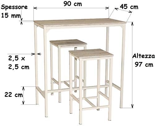 Esta alta mesa de Bar es una opción un poco más doméstica, perfecta para un uso diario como para el desayuno o el almuerzo rápido. Posee unas dimensiones de 90x45x97 cm, y pesa sólo 12 kg. ¡Lo más increíble de esta mesa de cocina alta es que viene junto con dos taburetes fantásticos!