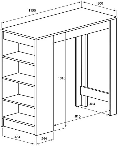 Esta mesa es otra increíble opción para ti si quieres tener un mueble que agrande el espacio de tu hogar y sea a la vez versátil y visualmente atractivo. Con unas dimensiones de 113×40 cm, la puedes ubicar en tu cocina o salón, e incluye una estantería con tres estantes en el que podrás guardar desde utensilios de la cocina como botellas de vino o especias.
