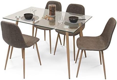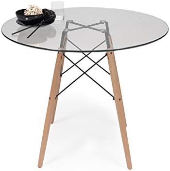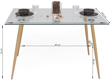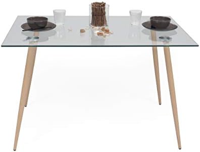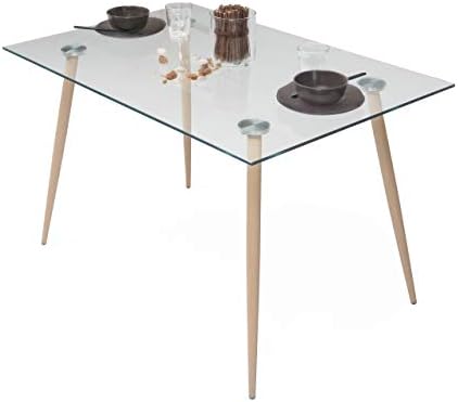 Si lo que deseas es una mesa de cocina o salón de cristal templado totalmente resistente y fabricada con el propósito de aguante al uso diario, ésta es tu mejor opción. Las patas de esta fabulosa mesa son metálicas, de color madera roble, y garantizarán el soporte absoluto de peso en la mesa.