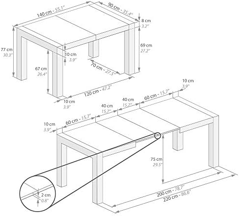 Posee unas dimensiones de 75x120x80 cm, por lo que es bastante es amplia. No es expansible como otros modelos de la lista, no obstante, tiene el tamaño perfecto y para que una familia de cuatro personas coma cómodamente. A nosotros nos pareció que no sólo era genial para picar algo, sino que también añadía un plus extra a la decoración. Esta mesa será bastante útil para ti y para tu familia, brindándole un aspecto único y diferente a tu hogar.