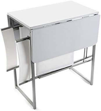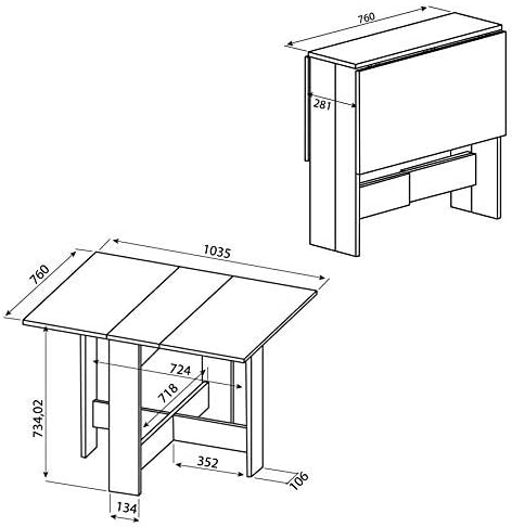 Éstas, al retraerse, resultan en un mueble muy compacto y fácil de guardar en cualquier espacio de la cocina. Tiene unas dimensiones de 103 x 76 x 73.4 cm y viene incluida con dos patas giratorias para sostener las tablas de madera. Tiene capacidad para hasta cuatro personas.