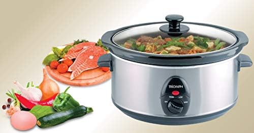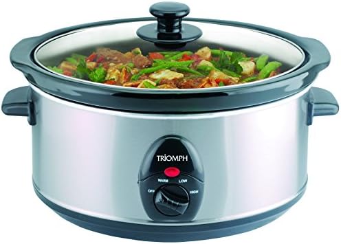 Esta olla de cocción lenta Triomph tiene una capacidad de 3,5 litros y gracias a su termostato de 4 posiciones podrás cocinar todo tipo de recetas sin ningún problema. Además, sus materiales de alta calidad hacen que esta olla de cocción lenta sea duradera, además de fácil de limpiar, gracias a sus paredes de acero inoxidable.