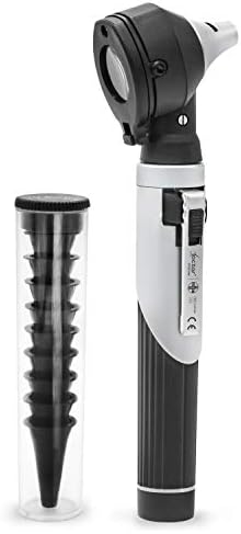 Cerramos nuestro repaso a los mejores otoscopios que podemos comprar en internet con este otoscopio que destaca por estar totalmente enfocado a profesionales. Construido en metal y goma, cuenta con un aumento de 3 partes para ofrecer una imagen cristalina y sin reflejos. Cuenta, también, con una luz de tipo halógeno xenón XHL que ofrece una luz hasta un 100% más brillante que las de LED y que de manera mucho más concentrada.
