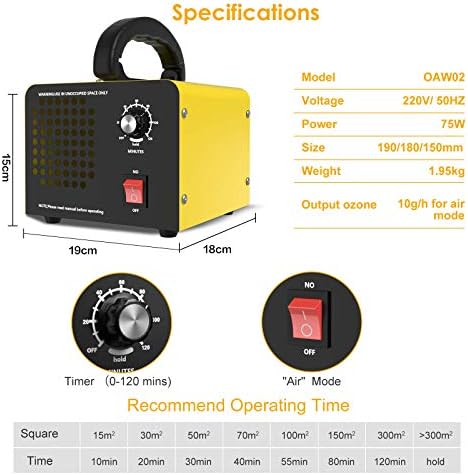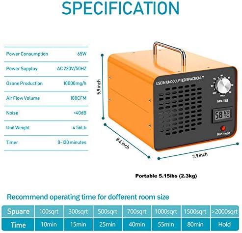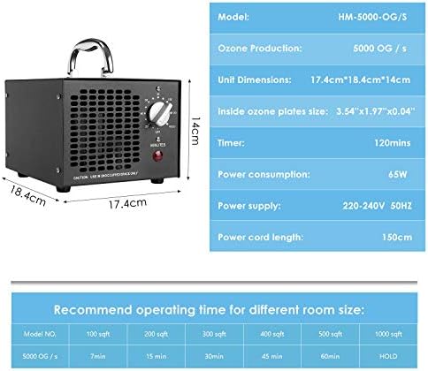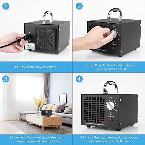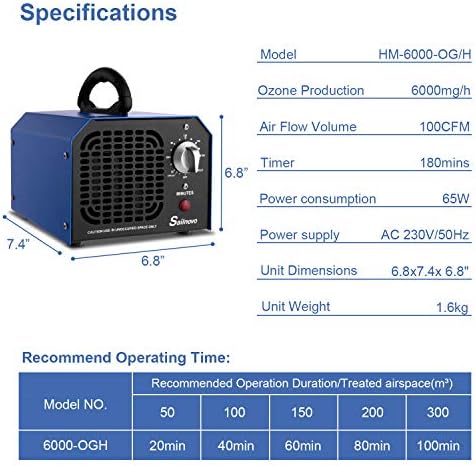 ¿Tu casa suele tener muchos olores y deseas que todos desaparezcan? Los perros, el tabaco, el sudor…Muchas veces nos encontramos en situaciones donde, por diferentes motivos, se hace difícil que la calidad del aire sea la mejor y nos puede llegar a enfermar o a causar alergias. Este ozonizador de 55 vatios y dos kilos de peso dispone de un voltaje de 220v. Se trata de un modelo con temporizador, ideal para todo tipo de cuartos de diferentes tamaños: según si son habitaciones pequeñas o espacios industriales, elegirás el tratamiento adecuado (entre 20 a 180 minutos). Se recomienda que cuando empiece con el proceso, evites estar presente hasta que termine.