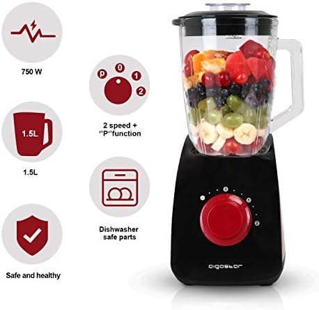 Además de las una jarra de alta calidad y grandes dimensiones, pudiendo contener hasta un litro y medio de lÃquido, tiene sistemas de bloqueo de seguridad, patas antideslizamiento que hacen más cómodo su uso y una función para limpiar el vaso directamente en la máquina de forma muy cómoda y práctica.