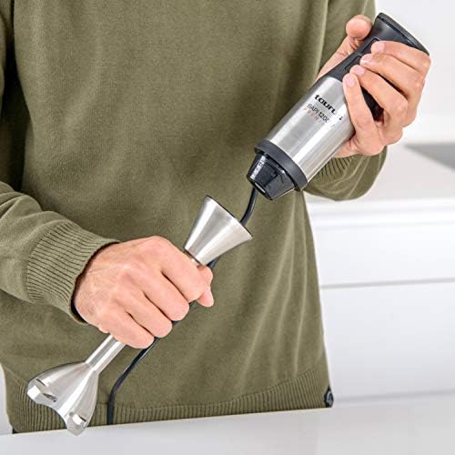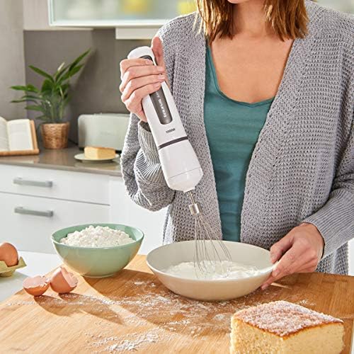 Volviendo a las batidoras de mano, Taurus pone a tu disposición una de las opciones más potentes, con 1.000W y toda una serie de accesorios de calidad que lo convierten en uno de los utensilios eléctricos más prácticos y versátiles en cualquier cocina. Taurus es sinónimo de calidad y lo demuestra poniendo en esta batidora unas cuchillas de acero inoxidable de alto rendimiento y doble efecto capaz de picar alimentos tan duros como el hielo sin problemas y dejando una forma homogénea.