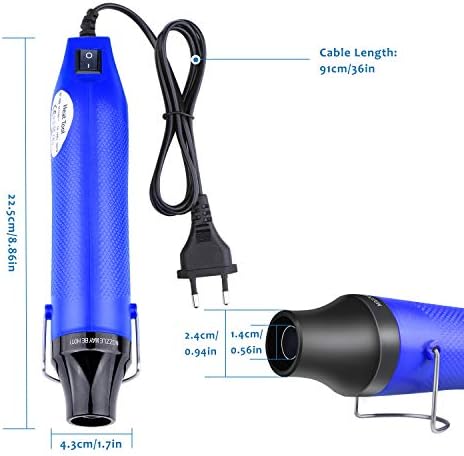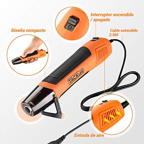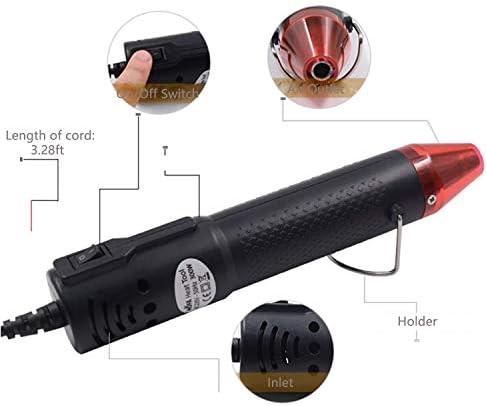 Se trata de una pistola de aire caliente pequeña ideal para tareas de bricolaje, manualidades y artesanías. Puede utilizarse para películas termocontraíbles, topetón, arcilla, sellos de goma, pegamento, pinturas de secado rápido y adhesivos catalíticos.