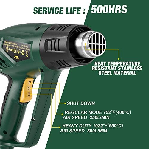 Cuando se necesita una pistola de aire caliente con calidad profesional, este modelo debe estar en la lista de posibilidades. Su temperatura mínima es de 80°C, mientras que la máxima es de 600°C, por lo que es excelente para realizar trabajos ambiciosos.