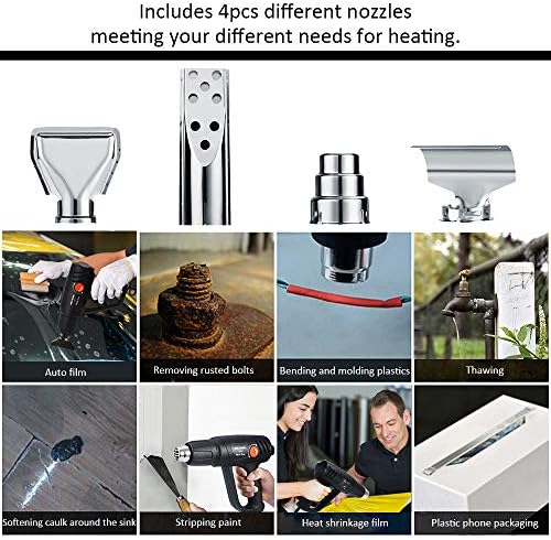 Además, cuenta con 4 boquillas adicionales que le otorgan mayor precisión y facilitan su uso en diferentes circunstancias. Lo mejor de esta pistola de aire caliente es que está equipada con protección ante el sobrecalentamiento, por lo que su uso es completamente seguro.