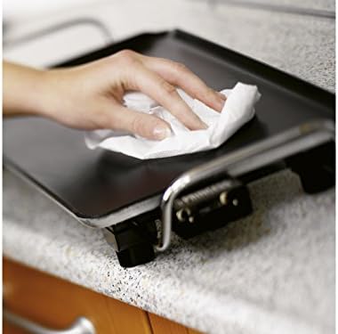 La superficie es completamente antiadherente, por lo que no se necesitan aceites para cocinar y se obtienen comidas más saludables y jugosas. También incluye una bandeja recogejugos y una espátula para voltear y retirar los alimentos del calor.Â