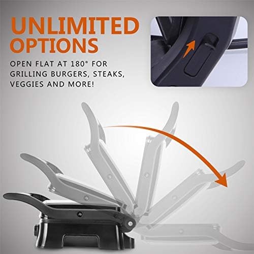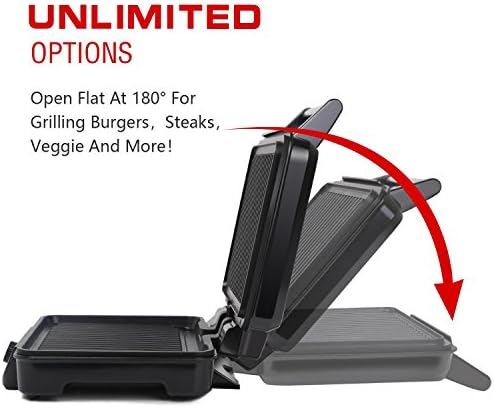 Si buscas una plancha de cocina de diseño exclusivo, no puedes pasar por alto este modelo. Cuenta con dos placas antiadherentes que se abren 180° para usarse como grill o como sandwichera. Incluso puedes usar cada una para preparar diferentes alimentos a la vez sin que sus sabores se mezclen.Â