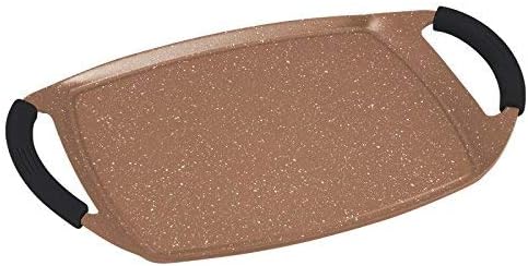 La plancha cuenta con un revestimiento de piedra que la hace antiadherente, y dos asas de silicona que facilitan su manejo tanto al cocinar como al servir. Para usarla no necesitarás ni un poco de aceite, ya que los alimentos no se pegan y por ello, se cocinan en su propio jugo.Â