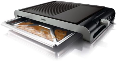 Además, se consigue una cocción muy similar a la de una barbacoa y lo mejor de ello es que no se necesita carbón ni se genera humo. Por otra parte, la plancha cuenta con una superficie de 52 x 27 cm y una bandeja que recoge los jugos y las grasas de los alimentos mientras se cocinan.