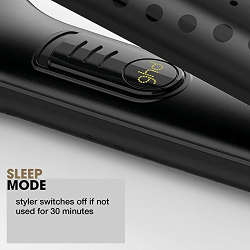 En primer lugar, su nueva tecnología de calefacción, desarrollada por la marca y que utiliza placas de cerámica, permite que su cabello sea suave, brillante y que dure todo el día. Gracias a la cerámica, tu cabello está protegido del calor y no sale dañado por el alisado.