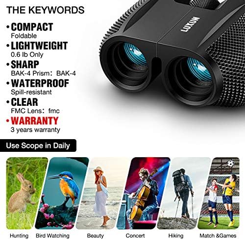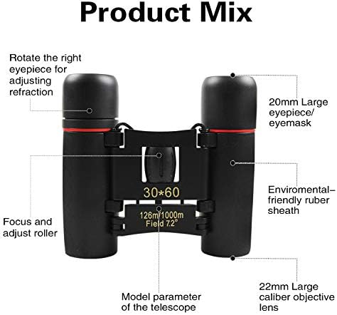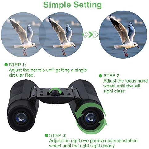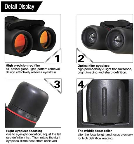 Los binoculares se pueden sacar de los oculares de goma y adaptarlos a las gafas. Diseño pequeño y ligero, perfecto para adultos y niños.