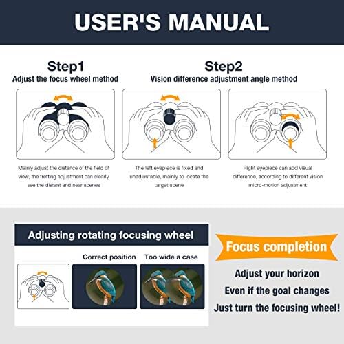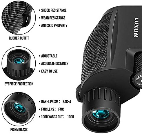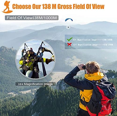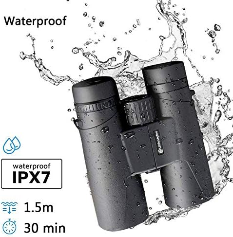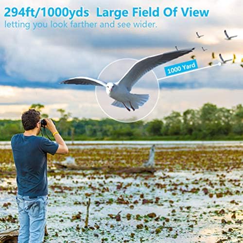 Fabricados con armadura de goma de gran durabilidad y un perfecto sellado, les proporciona una protección contra la niebla y las salpicaduras de agua. Observar a larga distancia es posible con estos prismáticos potentes. Se puede visualizar detalles a 1000 yardas de distancia con una vista amplia de 187 pies / 1000yds.