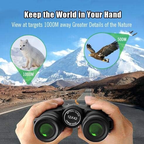 Con un campo de visión nítido y amplio de 12 aumentos, brinda imágenes coloridas y claras. De alta calidad y potencia, le hacen ser unos prismáticos buenos y profesionales. Binoculares compactos, pueden apuntar a su objetivo desde una distancia de 1000 metros y captar todo tipo de detalles sin perder el brillo.