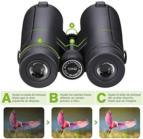 Campo de visión de 1o aumentos y un ajuste de enfoque fácil. No son aptos para observar la oscuridad sino hay algo de luz. Otras de las cualidades a destacar es que son prismáticos a prueba de polvo e impermeables. Si lo que buscas es una experiencia visual completa estos binoculares son perfectos para completar distintas actividades al aire libre. También son para caza.