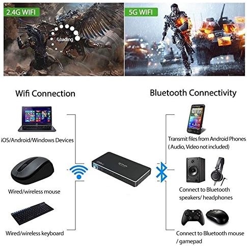 Este proyector DLP portátil es uno de los más populares del mercado. Primero por ser bastante ligero, con un peso de solo 755 gr, pero también por tener un sistema operativo Android 7.1 – que también incluye Wifi, y que ofrece un funcionamiento excelente. Gracias a esto podrás navegar, accediendo desde Netflix hasta Youtube rápidamente. Cuenta con una memoria interna de 8 GB, así como entradas para conectar otros dispositivos externos: tarjeta SD/TF, HDMI, USB, etc.