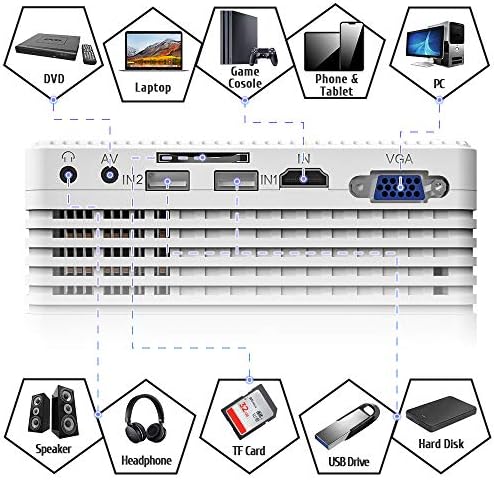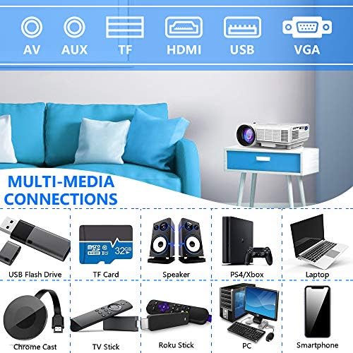 Además, este proyector USB cuenta con múltiple accesibilidad multimedia. Incluye gran variedad de puertos para hacer mucho más sencillo su uso, y, también, cuenta con interfaces integradas como HDMI, tarjeta TF, VGA, AV y, como no, maravillosos puertos USB que te harán disfrutar del cine en casa de la manera más sencilla. Incorpora una gran pantalla de 220 pulgadas, sin duda, este es el proyector USB que estabas esperando.