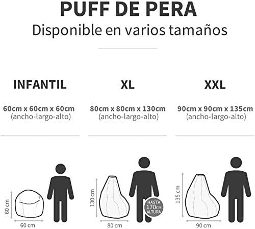 Este puff pera para relax es perfecto para dormitorio infantil dadas sus dimensiones 7 Ø x 90 cm. De acabado de alta calidad, se adaptan perfectamente a la espalda y a la columna vertebral sin deformar la posición de asiento.